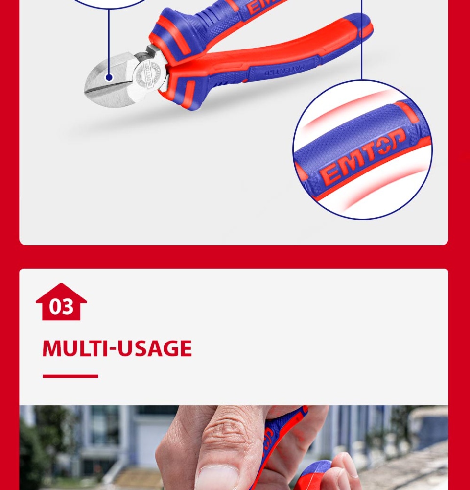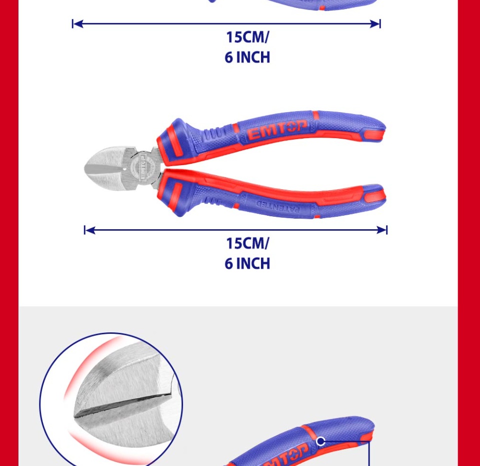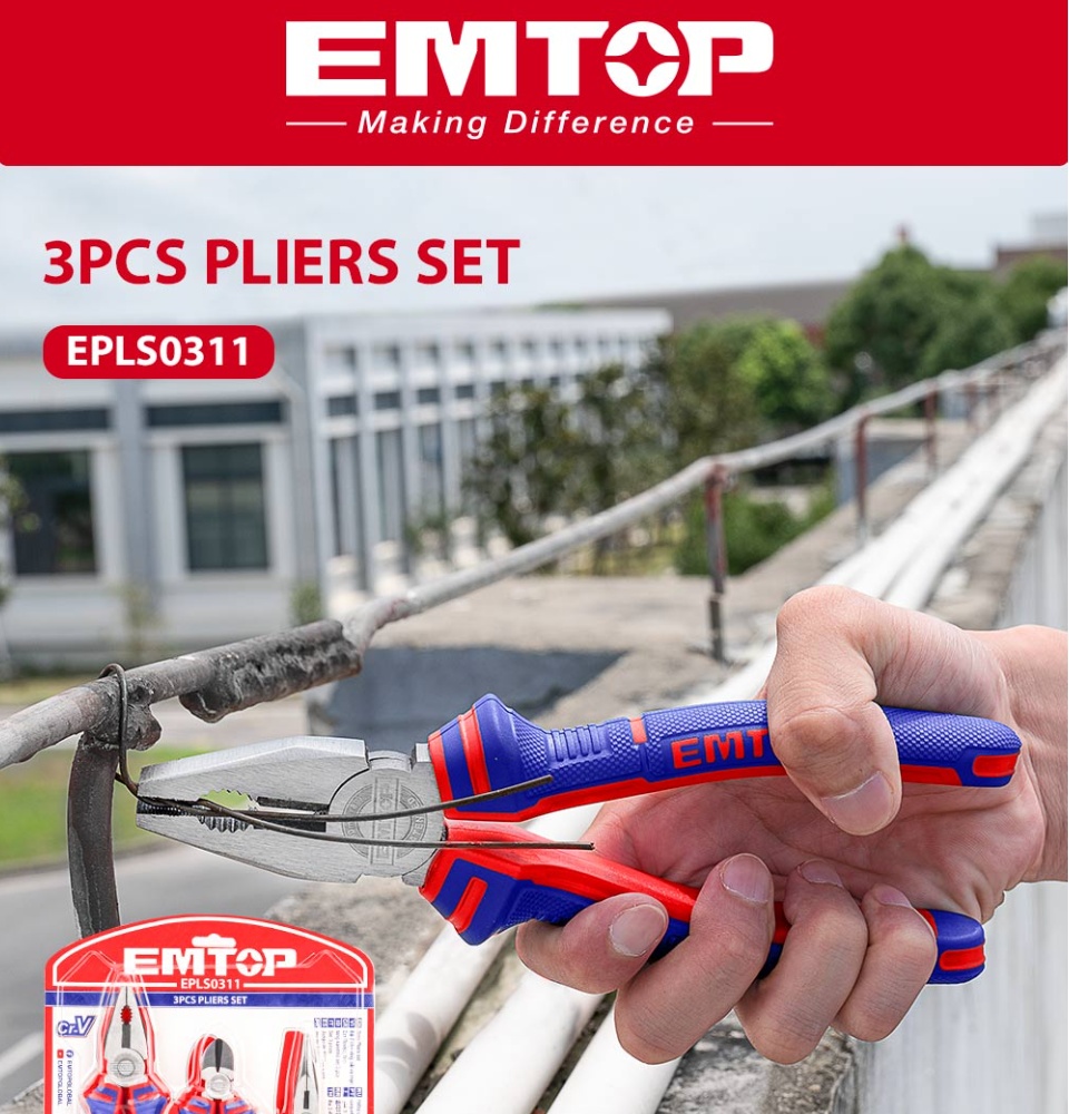 EMTOP 3PCS钳子套装,8英寸组合钳子,6英寸长鼻钳,6英寸对角线切割钳多功能钢丝钳EPLS0311