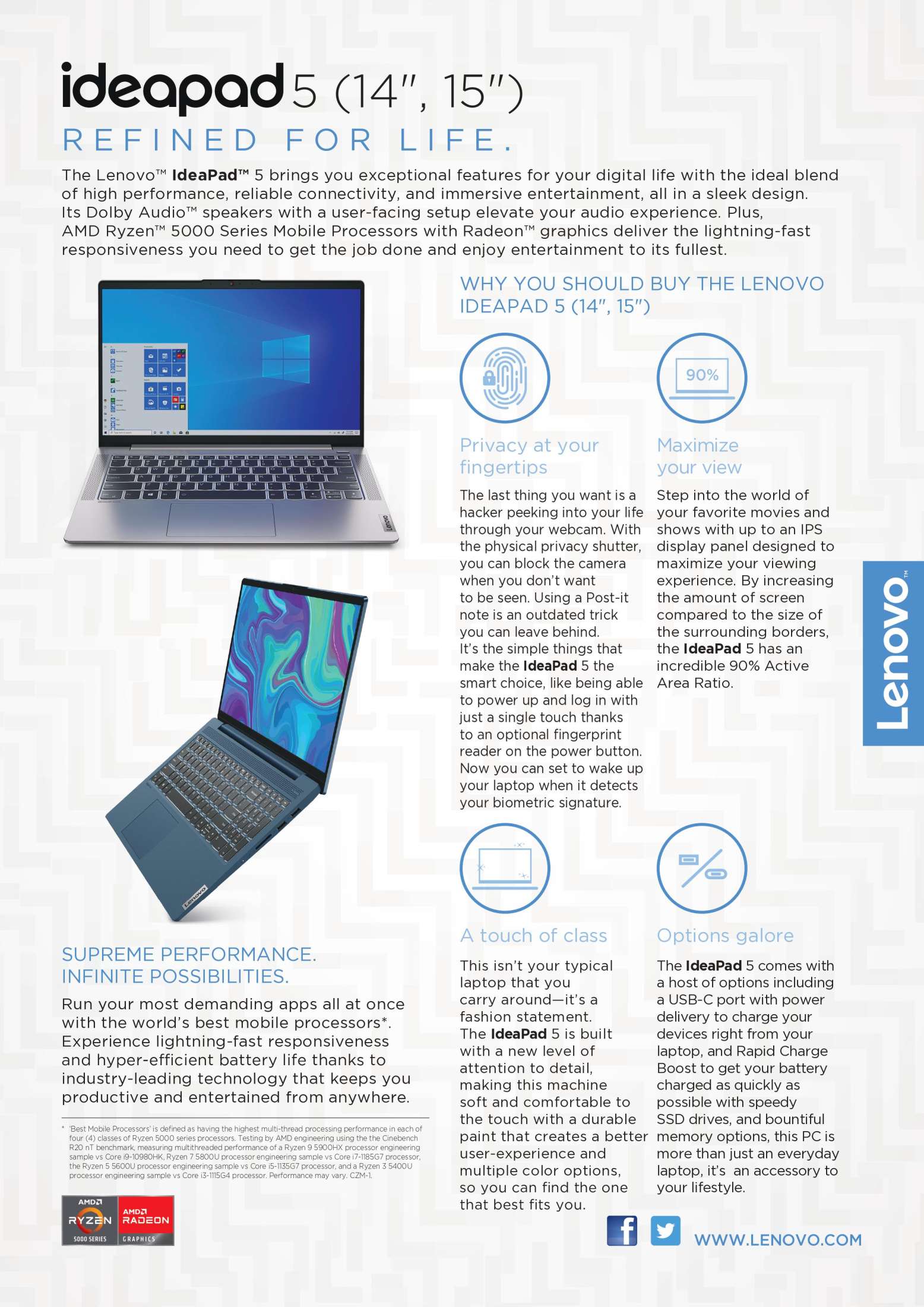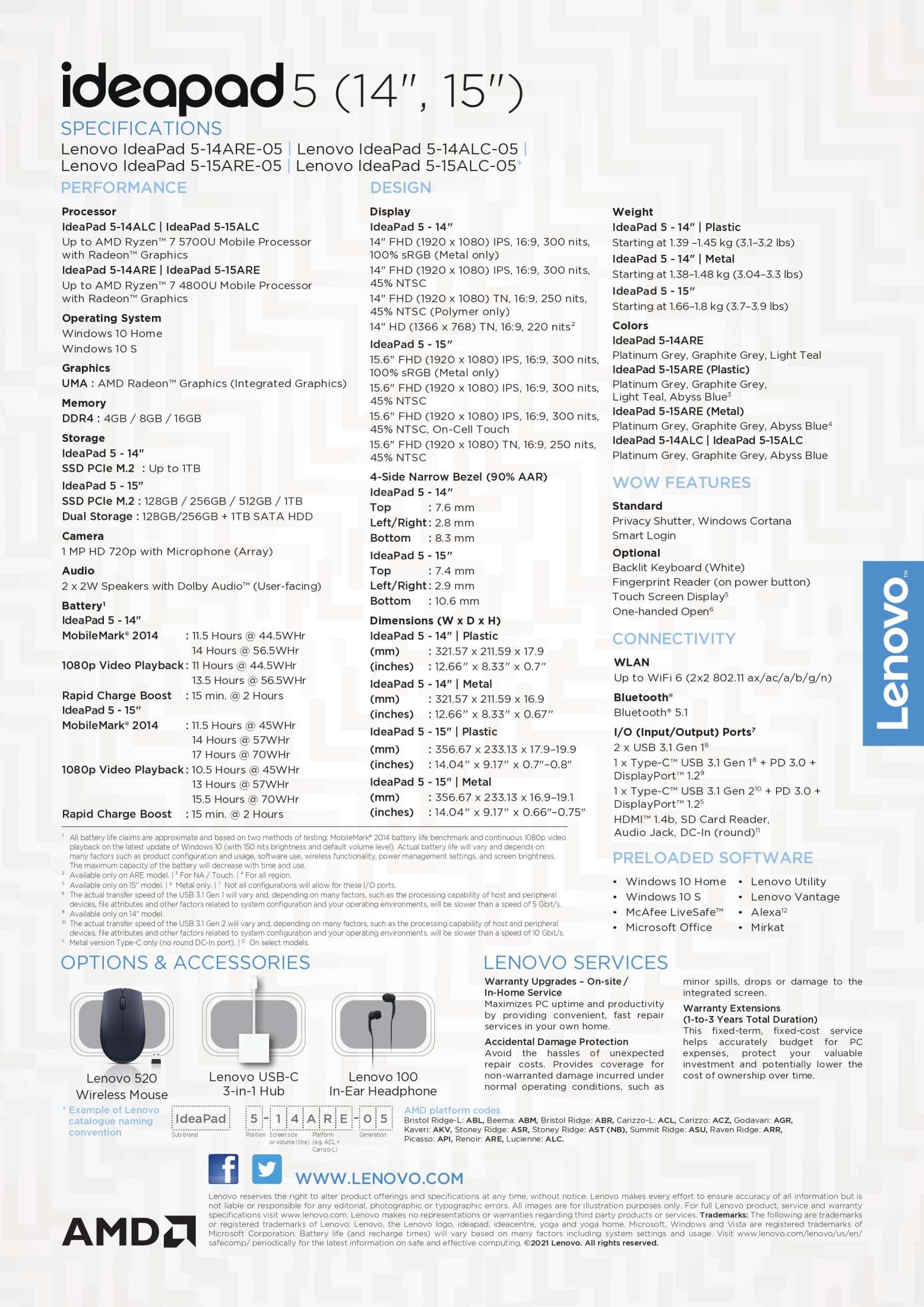 Lenovo IdeaPad 5 14ALC05 | 14inch FHD (1920x1080) 300nits | AMD Ryzen 5 5500U | 16GB RAM | 512GB SSD | 1.39Kg | Graphite Grey Color | Win 11 Home | 1Y Premium Care